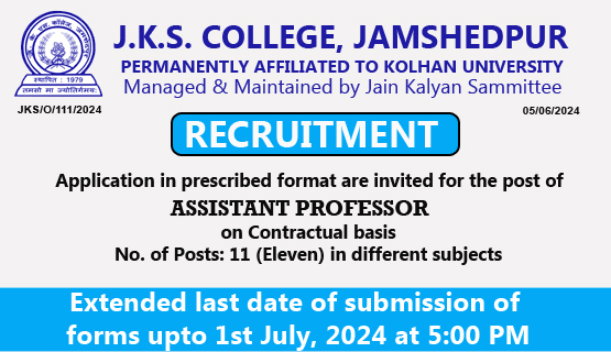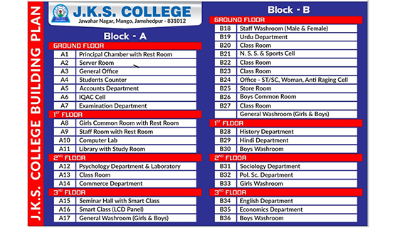 J.K.S. college was established in 1979 and is situated in the midst of urban/semi urban/ rural part of densely populated area of Mango in the district of East Singhbhum, Jamshedpur, state of Jharkhand.